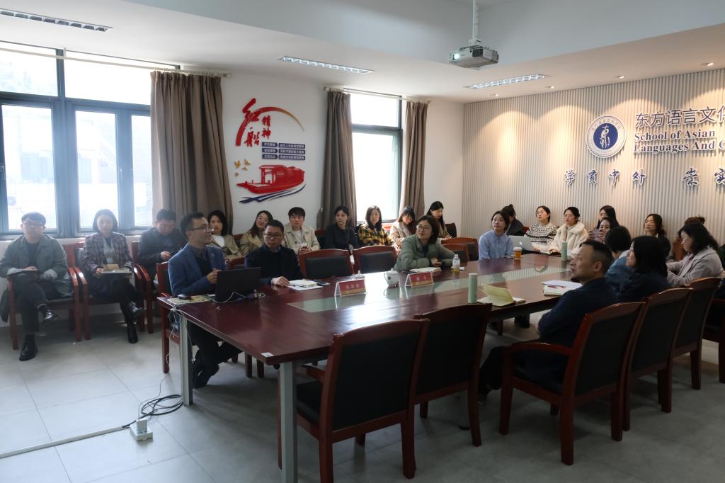 为提升东语学院教师课程教学大纲编制总体水平,促进教学质量内涵式发展,学院于2022年3月8日(周一)中午12:30组织召开学院“教学大纲修订专题研讨会”,并邀请校教学监测评估中心主任阮建苗、教育学院周全教师讲解专业认证背景下课程教学大纲制定的基本理念、制定标准和相关注意点。东语学院全体任课教师以及西语学院部分专业系主任参加了本次研讨。