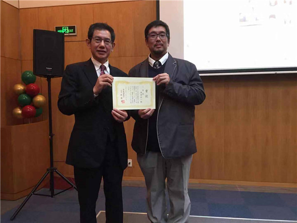 福田老师于12月26日参加了由日本驻沪总领事馆举行的讲座和交流会,此次大赛的主办方——日本侨报社的段跃中总编辑为福田老师颁发了奖状及奖品。随后,福田老师参加了在总领事馆公邸举办的恳谈会,并与日本的片山总领事、段跃中总编辑以及来自各个大学的老师、同学们进行了深入的交流。