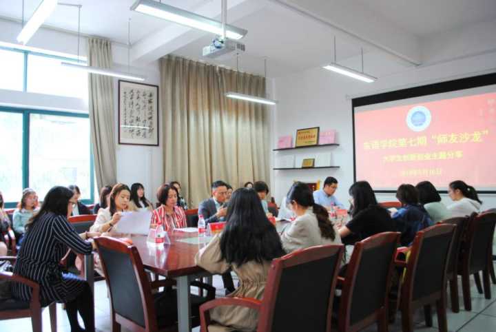 本期“师友沙龙”邀请到了潭州教育集团董事长,长沙市经济发展环境测评员周有贵先生和潭州教育集团运营总监,教育部产学合作协同育人项目负责人肖娣女士。学院党总支书记王永青老师、日语系副主任陈新妍老师、日语系许翠微老师、学工办主任丁彩瑶老师、团委书记张志华老师参加了本次活动。