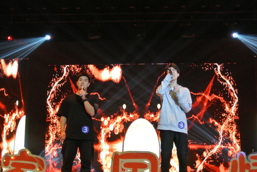 独唱舞台为我们带来了视觉与听觉的双重享受,组合自然也不甘示弱。随后表演的是来自继教学院的男子组合曾智宁和孙彬宁,他们的演唱曲目是《Something Just Like This》。