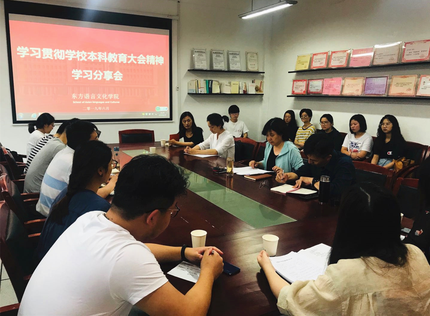 为贯彻落实学校第二次党代会精神,进一步明确新时代本科教育工作的主要任务和学校事业发展的目标方向,根据学校《关于加快建设高水平本科教育的实施意见》的文件精神,6月20日下午,东语学院组织全院教职工、学生代表召开学校本科教育大会精神专题研讨会。
