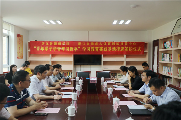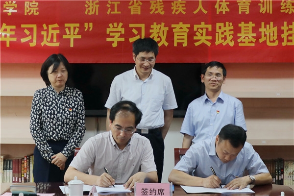 与浙江省残疾人体育训练指导中心“‘青年学子学青年习近平’学习教育实践基地” 签约暨授牌仪式在省残疾人体训中心举行。校长洪岗出席仪式并讲话,为基地授牌。