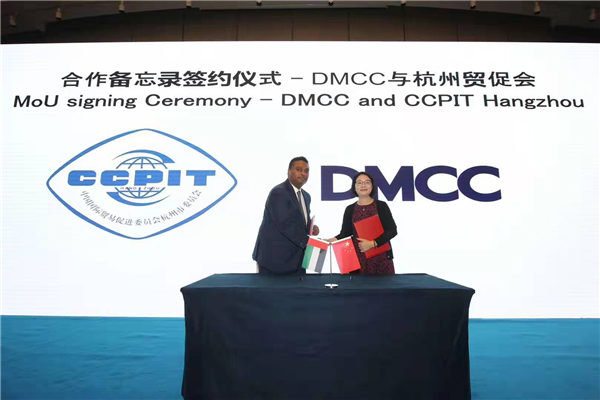 讨论会结束后,在座所有参会者共同见证了DMCC自由区首席运营官与杭州贸促会签署双边合作协议。