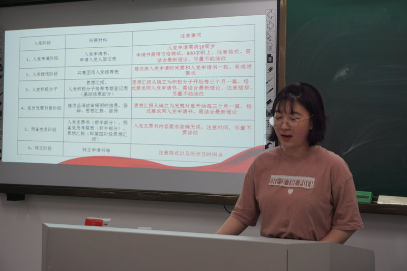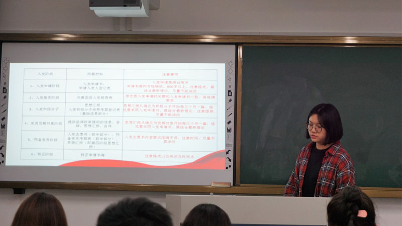 随后,党员联系人简要对党总支进行了介绍,同时对入党流程和注意事项也进行了详细讲解。同学们在台下认真倾听了党建联系人的发言,并且给予了热情的反馈,对党总支的工作以及入党的各项事宜表现出高度的关注,也反映出此次活动的必要性。