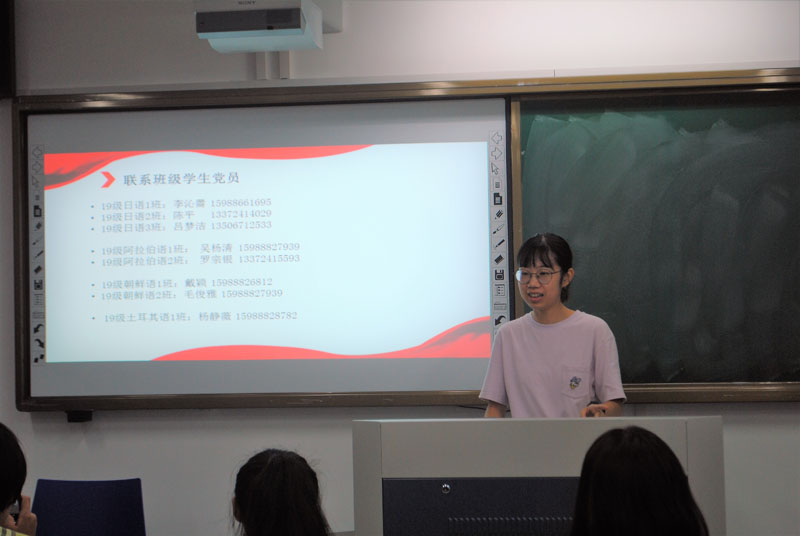 于9月23日由党员联系人吕梦洁、罗宗银、李沁薷和杨静薇等,带头组织党员联系下班级活动,分别对韩语、日语、阿语和土耳其语专业的同学进行了宣讲教育。