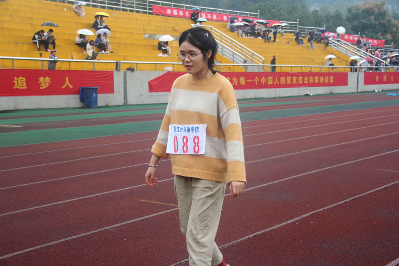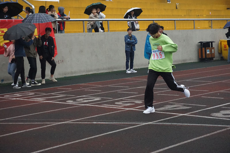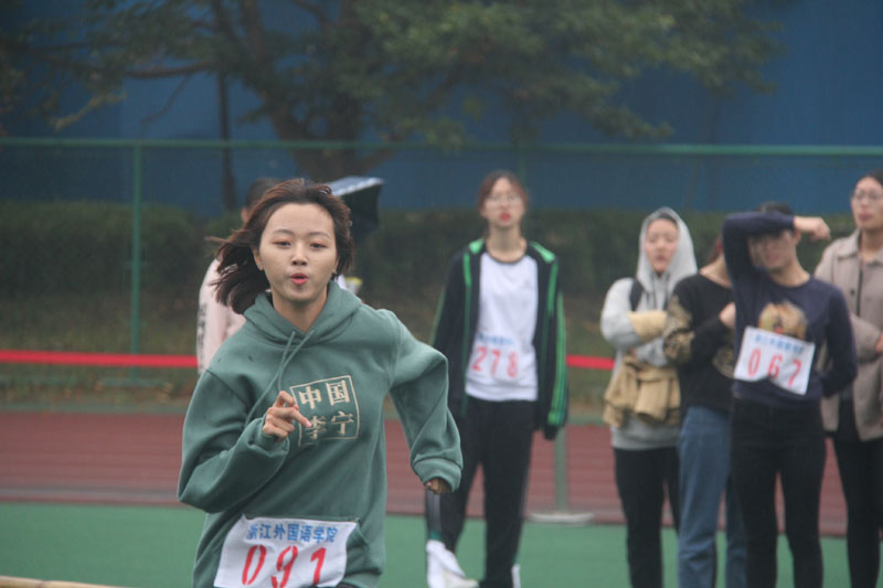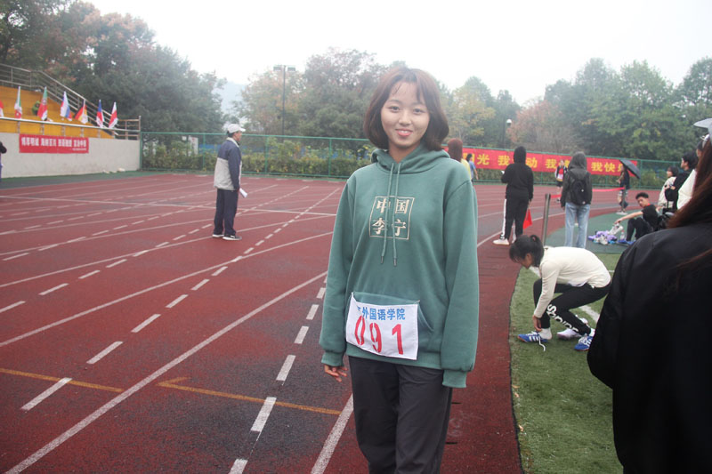 参赛选手——日语一班李曦婷同学却早已蓄势待发。奔跑的不仅是汗水,更是胜利与荣誉。