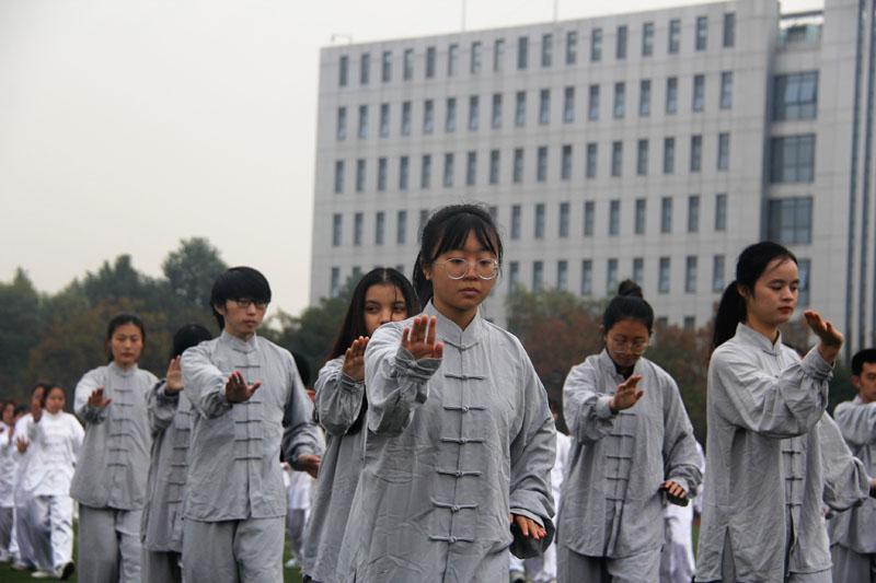 随后,各学院一起进行了太极拳与健美操表演。行云流畅的太极拳动作蕴含了东方美学的刚柔并济,灵动活泼的健美操舞步洋溢着青春年少的激情四射。