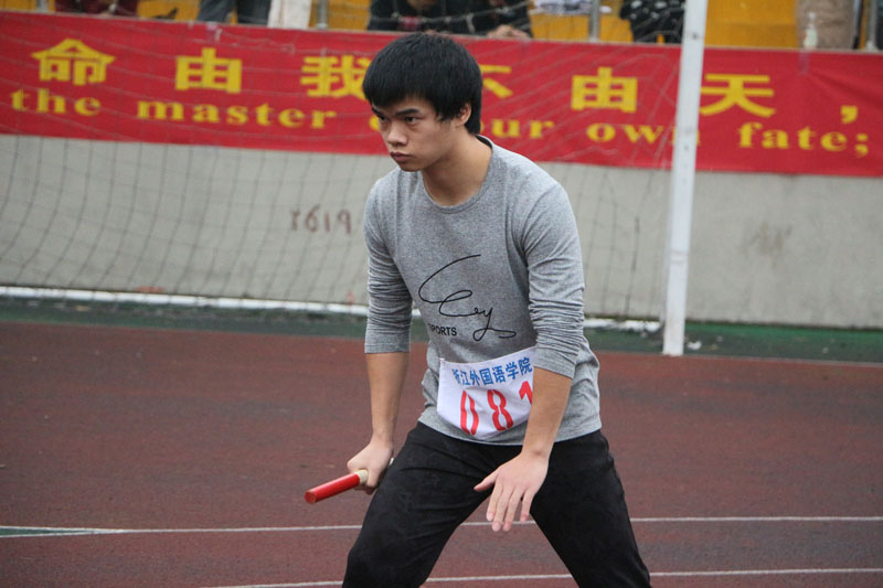 午后三时许,迎接东语第一个运动项目的是男子4✖100米,19级阿语1班杨孙逸、18级日语2班杨嘉俊、18级阿语2班钱子豪和18级日语1班张新磊四名选手奋力合作,一举拿下小组第二、总排名第三的好成绩。