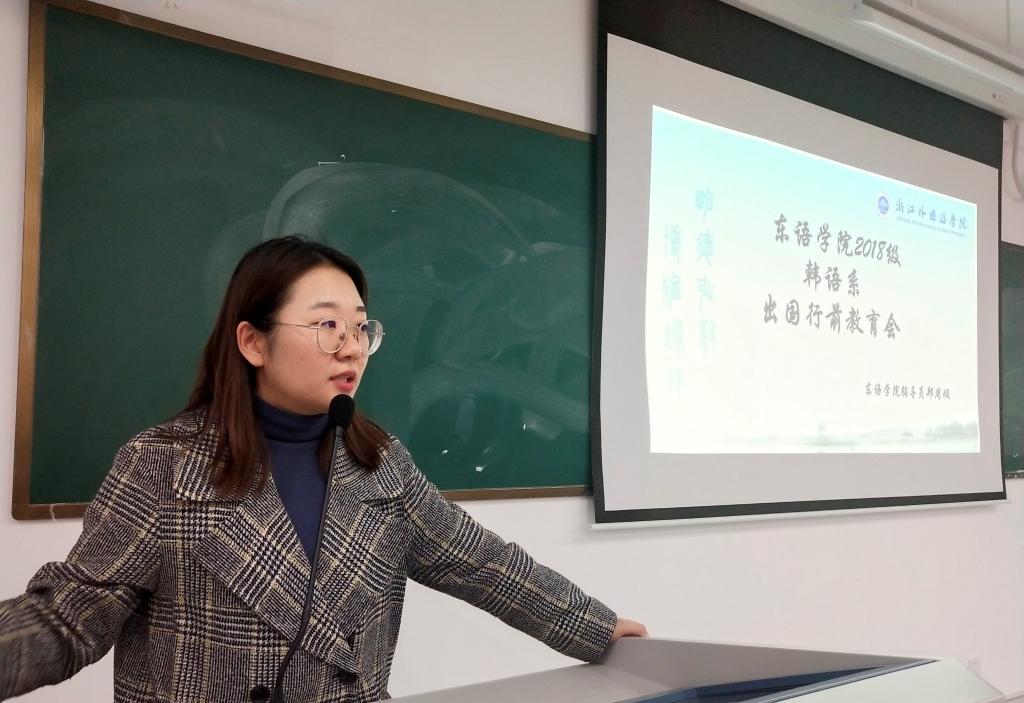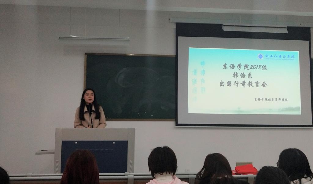 辅导员郑周璇老师、韩语系史欣艳老师为18级韩语系的同学们于融C307教室开展了赴韩国出国交流学生行前动员会。