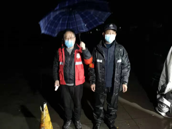 说着,父亲拿出手机,给我看了一些照片。“这些都是我刚刚拍的,”照片中,一个简陋的小棚子,三两把小凳子挨着棚边放着,几个人穿着深色的单薄衣服,带着口罩,守在棚子前。“这些,是社区里的党员和志愿者。”父亲告诉我,这几天,一直有人守在村口,保卫着村子的安全。我仔细看着照片,大多不是年轻人了,却没有一个人露出不耐烦的表情。“很多人都是志愿去的,就在村口的桥边上,两班倒,一直值班到早上,给每一个过路人做登记,量体温。”我才想起,这几天天气情况很差,连下了两天的大雨,更是夹杂着呼号的狂风。“这些人太辛苦了。下雨了,只有一块雨披。口罩也不够用。晚上睡觉,连床铺都是冰冷的。”父亲面容严肃,语调中有着无限敬佩和感激。