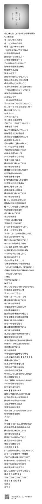歌名:《命に嫌われている。 (被生命所厌恶。)》