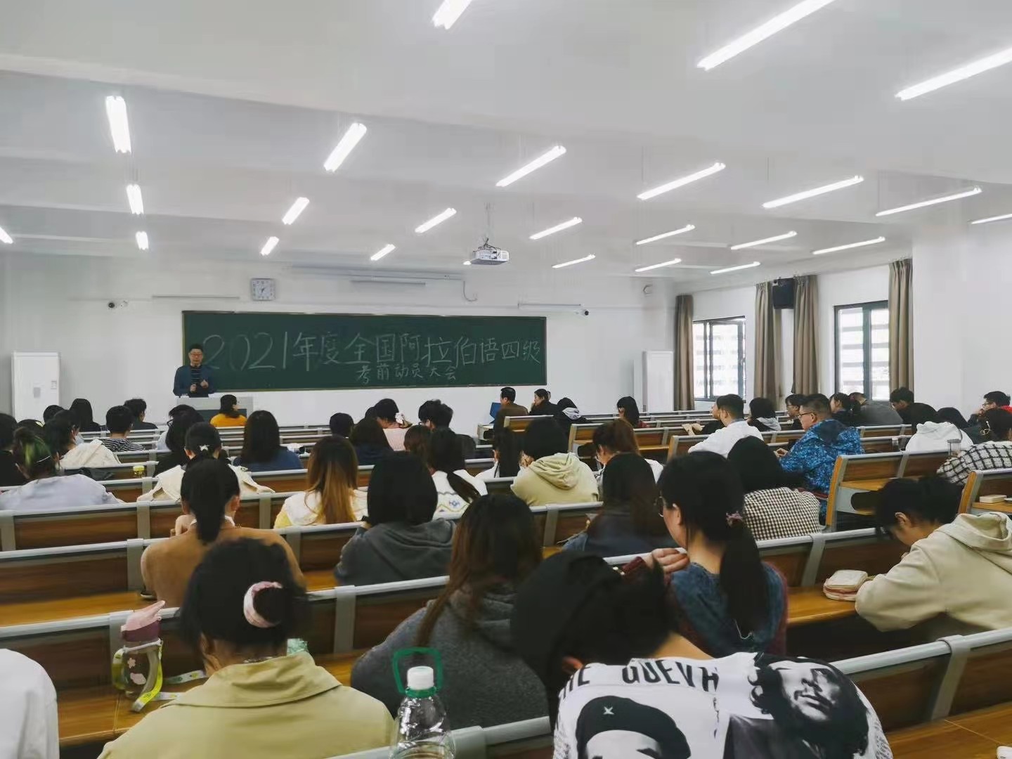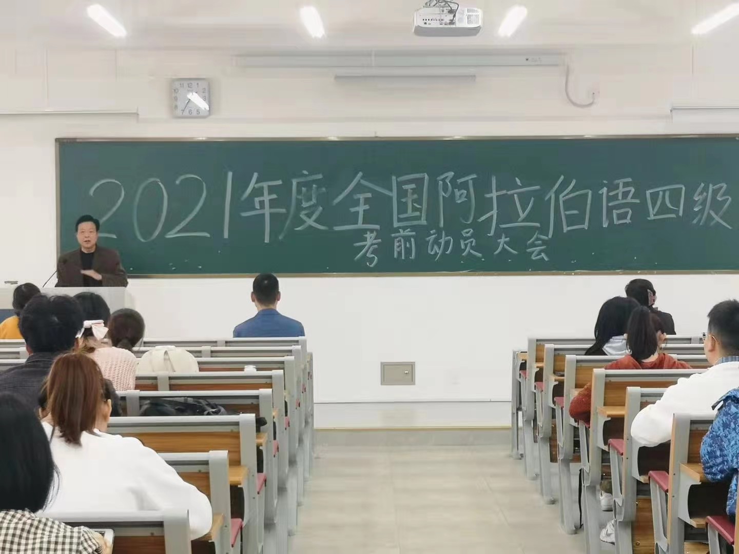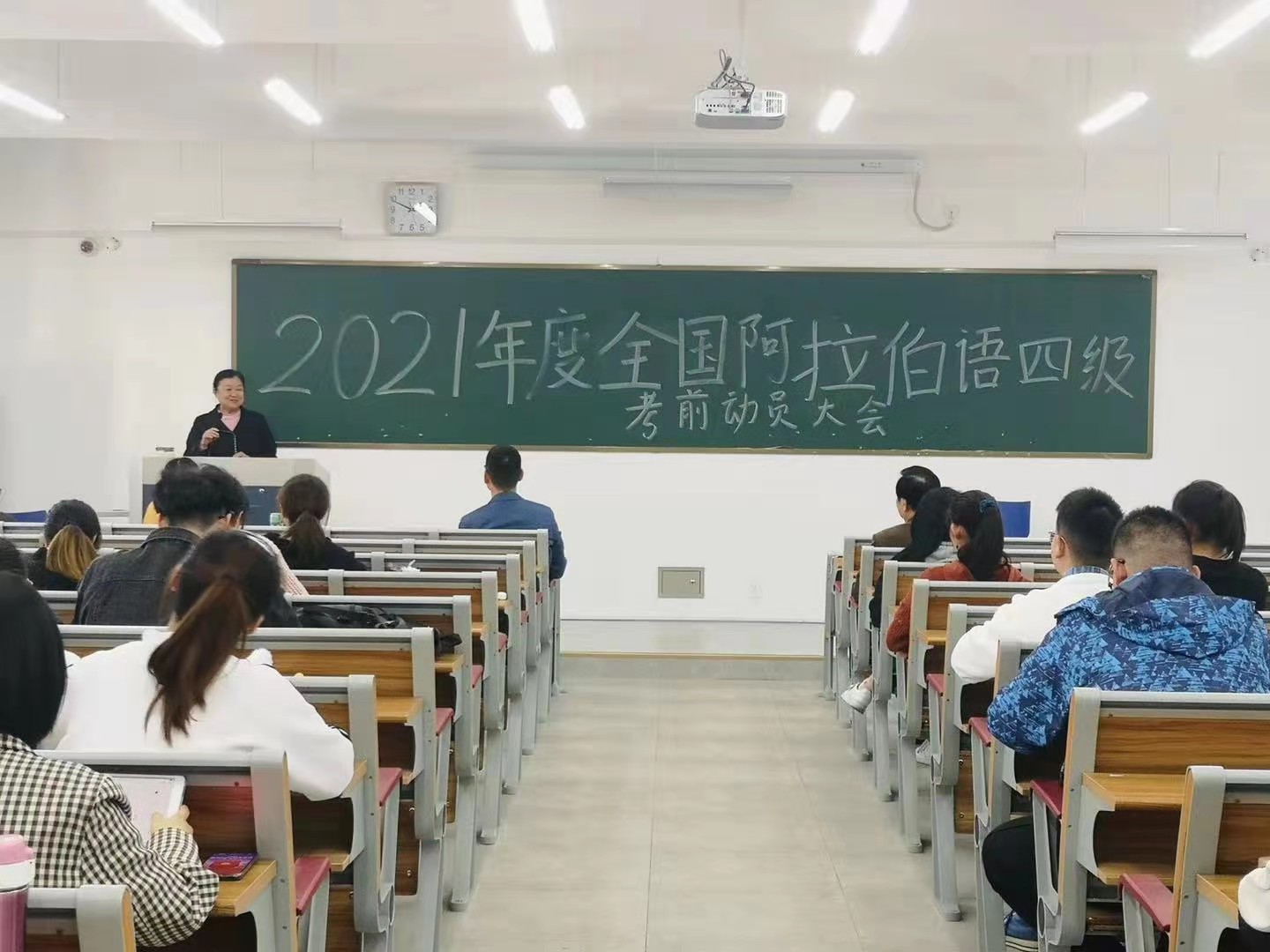 阿拉伯语专业大二与大三同学们备考专四的信心,3月26日下午东语学院阿拉伯语系开展了2021年度全国阿拉伯语四级考前动员大会。大会主讲人为周烈老师和蒋传瑛老师,为此次将一同参加全国统考的大二、大三学生加油鼓气。