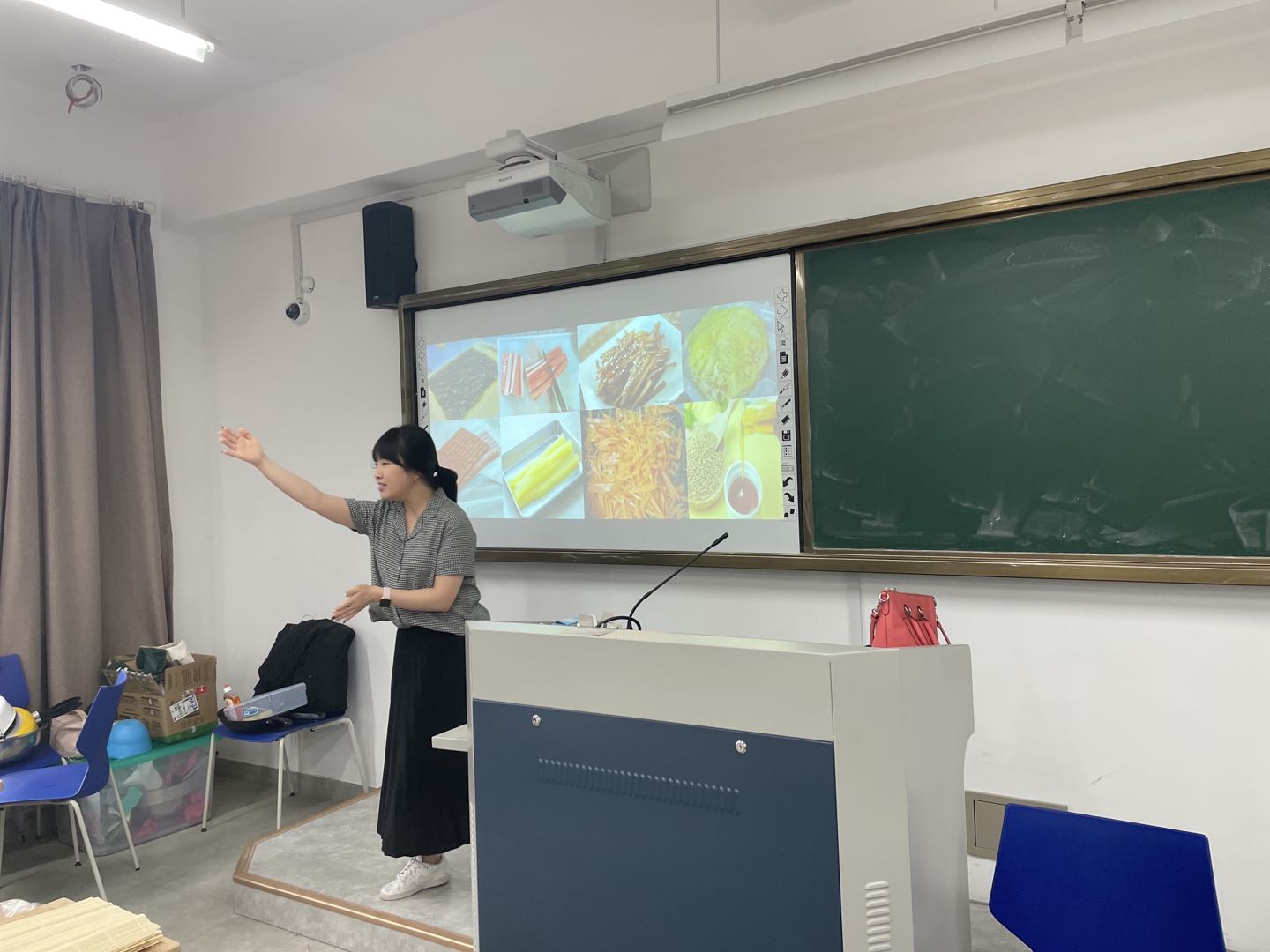 1. 由韩语系外教金秀衍老师为同学们讲解紫菜包饭的详细制作过程,通过了解韩国饮食相关内容、介绍本次活动食物、介绍相关食材、了解相关韩语词汇、以及观看详细紫菜包饭制作视频,使得同学们进一步了解了韩国饮食文化的特色。在学习制作方法的同时,加深对韩语食物类词汇的记忆。