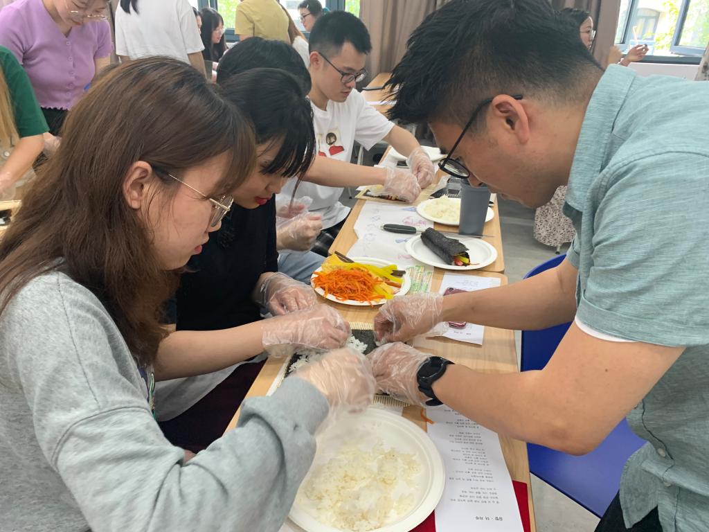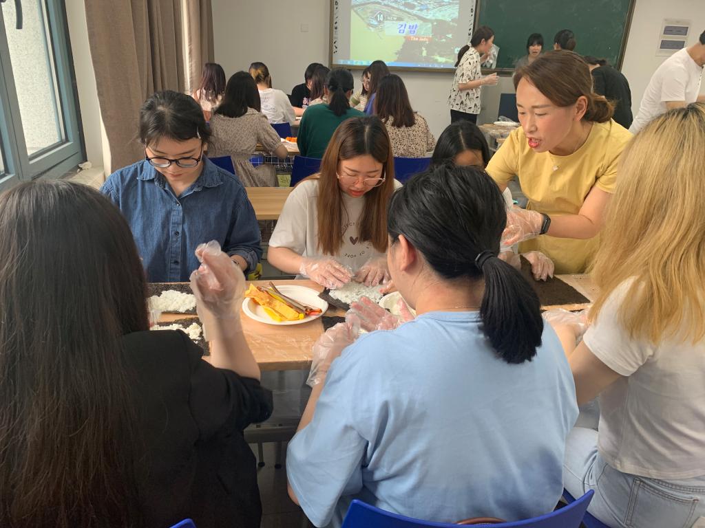 2021年5月11日11:00,由韩语系主办的“韩食制作”在融C102成功举行。2018级、2019级全体学生参与了本次韩食制作文化体验,韩语系教师金秀衍、朴秀贞、徐光锡、金洙京、史欣艳等主持并指导了本次活动。