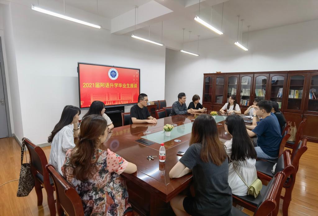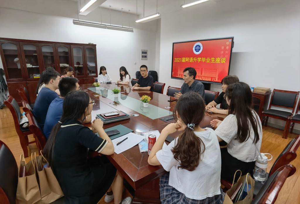 6月17日下午毕业典礼结束后,阿语专业11名即将奔赴国内高校读研深造的毕业生,齐齐聚集在融C304。在这里,校西溪学者(杰出人才)、环地中海研究院院长马晓霖教授,围绕“如何认识与做好研究生阶段学习”,与大家畅谈解惑、倾囊相授,为毕业生们接下来的深造学习送上了最真挚的祝福、最暖心的小课!党总支书记王永青、副院长曹笑笑出席活动。