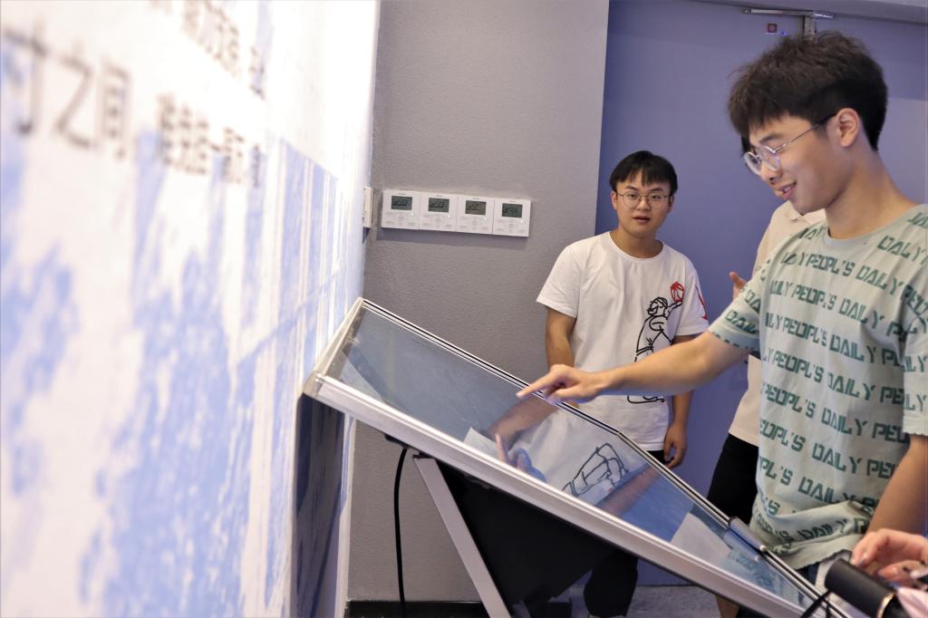 在“青年学子学青年习近平”学习教育展厅,新生们认真学习了浙外开展“青年学子学青年习近平”学习教育的初心,了解到学习教育的具体做法、成效和社会影响。通过触摸这里蕴含的理想信念与价值追求,相信同学们一定会在心中树立远大理想,以实现中华民族伟大复兴为己任,在浙外校园奏响“请党放心,强国有我”的时代强音。