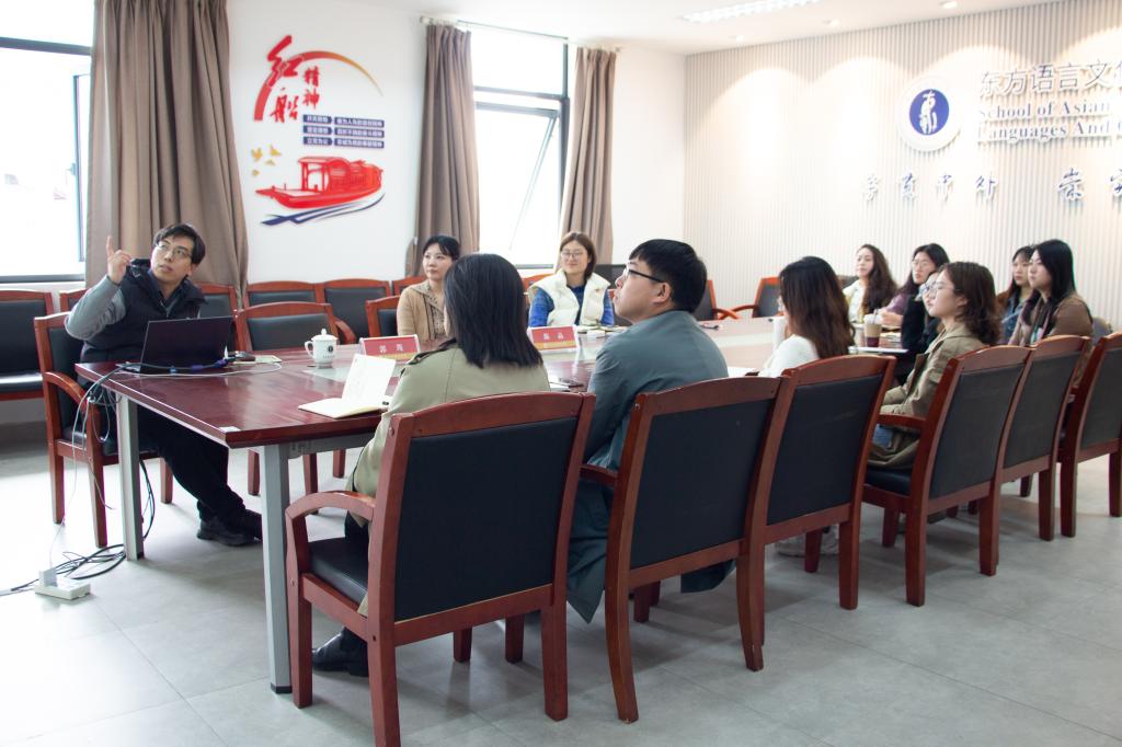 为加强教师队伍建设,提高青年教师教学技能与水平,鼓励教师积极参与教学改革,树立先进理念,发挥先锋、引领、示范作用,进一步推进学院教育教学改革,3月10日下午,东语学院于融C401会议室举办“青年教师教学技能培训讲座”。讲座邀请教发中心副主任郭筠、艺术学院教师陈晶介绍参与教育教学比赛的相关事宜,学院全体35岁以下青年教师参加,东语学院副院长曹笑笑主持讲座。