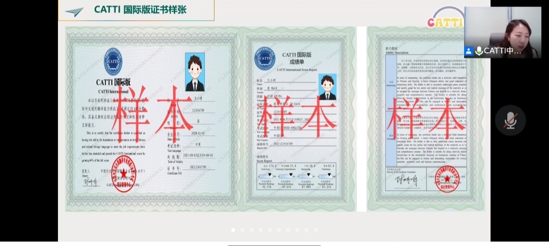 讲座的第二部分王晨阳老师分别从中韩CATTI国际版与ITT证书互认、中韩CATTI国际版专家组、中韩CATTI国际版题型介绍、中韩CATTI国际版能力分级、中韩CATTI国际版2022年考试计划、CATTI国际版证书样张以及CATTI国际版含金量等方面具体介绍了中韩CATTI国际版考试。王晨阳老师表示CATTI国际版对于同学们的未来就业、学习晋级和国际化发展方面都有很大帮助。