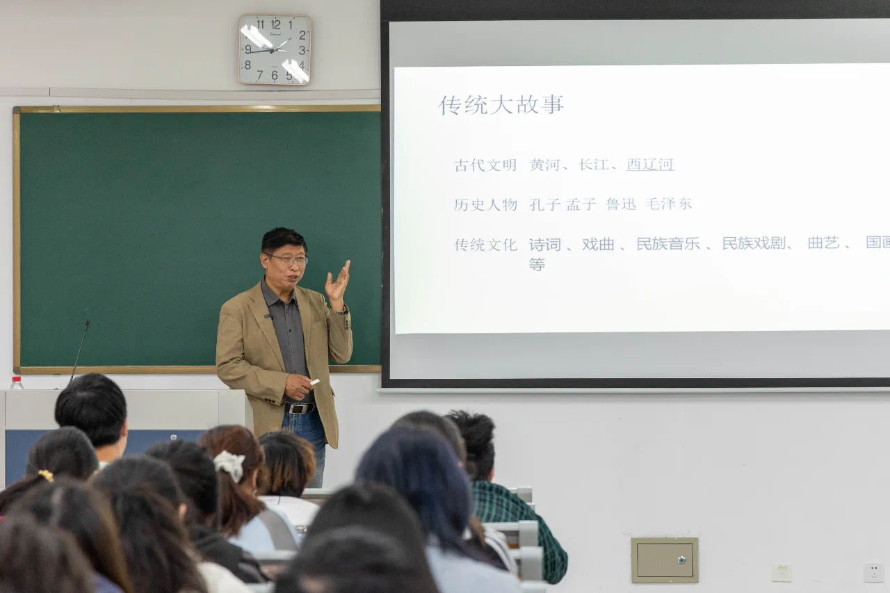 在讲座互动环节,修刚教授详细耐心地解答了学生们提出的问题,鼓励学生们要积极挖掘身边的小故事,注重故事内容,通过受众容易理解的说话方式讲好中国故事。