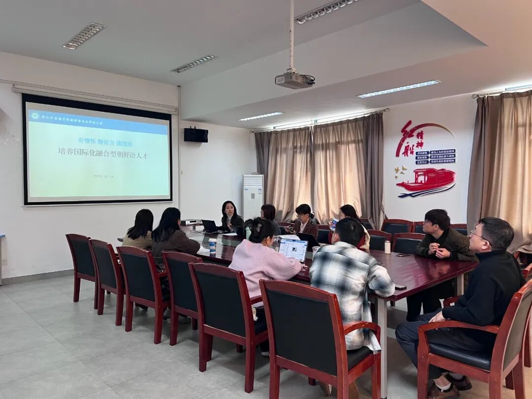 院长曹笑笑聚焦人才培养,展示国一流、省一流本科专业建设点及省级新兴特色专业建设成果,详解“立足浙江,服务长三角,面向全国”的培养导向与“厚人文、精语言、通国别、强实践”的人才培养体系,强调通过思政育人体系与“四课堂联动”实践机制,培育复合型国际化人才。