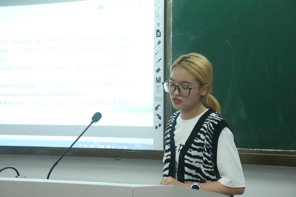 志工办的负责人夏雪莉同学在会上为大家说明了寝室长职责和寝室日常管理的规定,结合真实案例,列举了寝室禁用的违规电器,并着重向新生提醒了寝室生活的注意事项。通过真实案例,同学们深切地感受到安全用电的重要性并引以为戒。会上,新生各寝室长还加入了东语学院寝室长群,以此加强寝室间、师生间的沟通与交流。