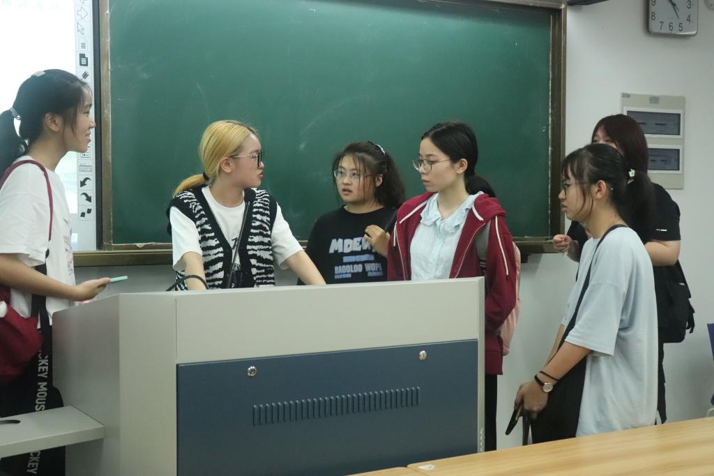 说明会结束后,一些同学主动留下来进一步了解寝室管理的相关事项,夏雪莉同学耐心仔细地为同学们进行了一一解答。