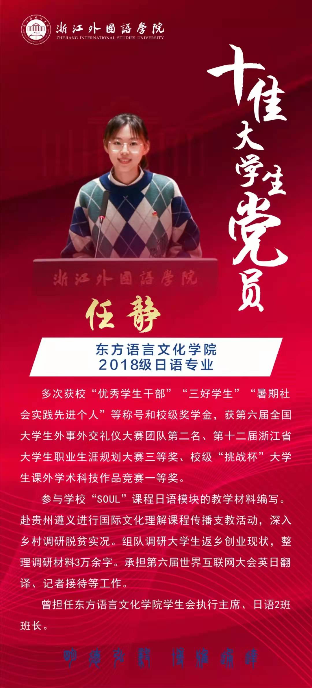 本次,我们有幸采访到了2021年度十佳大学生党员2018级日语二班任静,一起学习感悟她成为一名优秀共产党员的心路历程。
