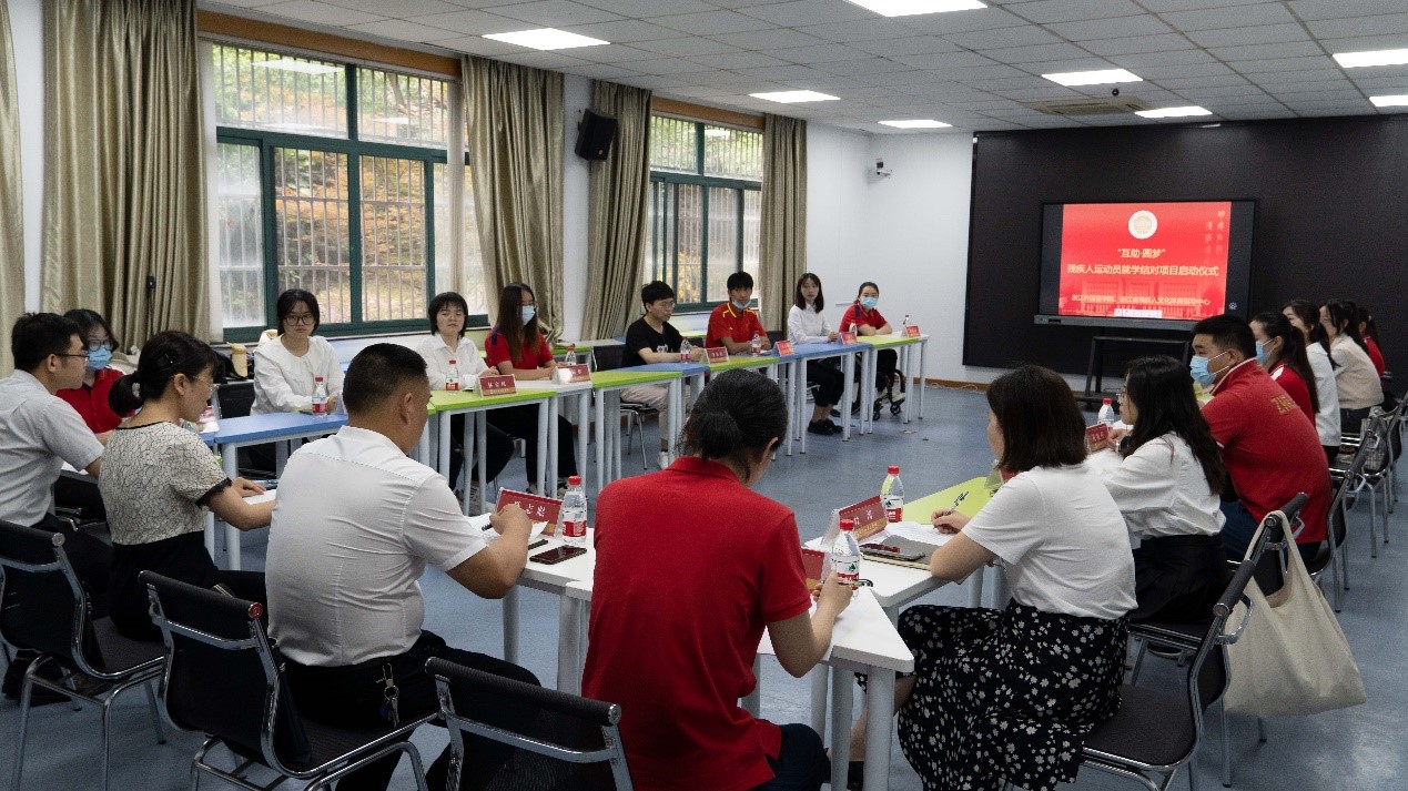 党总支副书记宋洋主持启动仪式。首批结对的7名运动员和来自英文学院、东语学院和西语学院的7名大学生志愿者参加启动仪式。