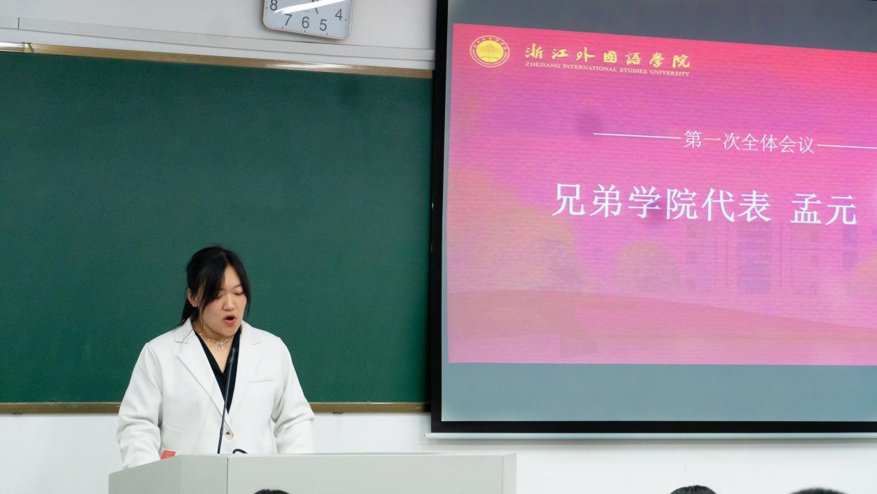 第一次全体会议在奏唱国歌后正式开始。宋洋代表学院党总支对本次大会的召开表示祝贺,他肯定了学生会过去一年所付出的努力和取得的成绩。他对学生干部今后的工作提出了希望,一是要努力提高政治素质,切实增强自律和责任意识,积极发挥示范作用;二是要善于思考和总结,提升综合素质和能力,在做好特色活动传承的基础上勇于创新;三是要平衡好学习与工作,想同学之所想、急同学之所急、解同学之所难,做广大师生的贴心人。