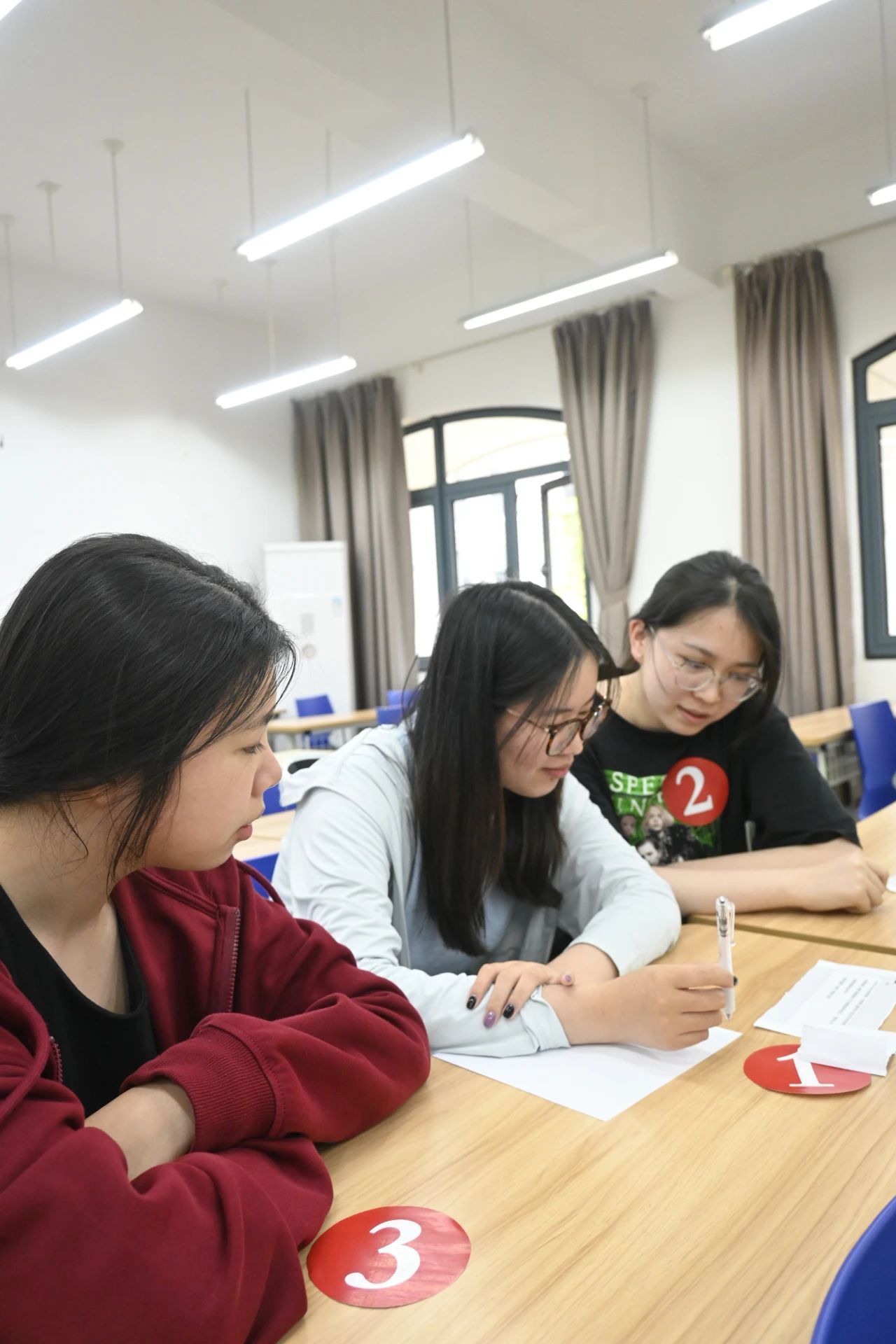 复试中,选手们模拟外交部新闻发言人,围绕主题展开讨论。各小组经过10分钟的热烈交流,推选代表进行现场发言。发言选手逻辑清晰,条理分明,展现了扎实的外交素养。其余选手则积极提问,现场气氛热烈而有序。