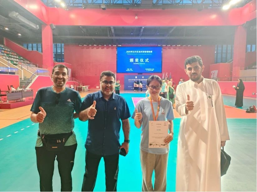 “作为沙特代表团的随团志愿者,这次亚大区坐式排球锦标赛让我将阿语专业所学付诸实践,也见证了体育的包容与拼搏精神。毕业前夕能参与如此盛事,为我的大学生活画上了圆满句号!”21阿语1班赵洪阳说。