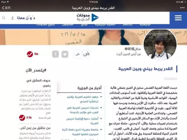 阿拉伯语系林昕煜同学文章被卡塔尔半岛电视台刊载