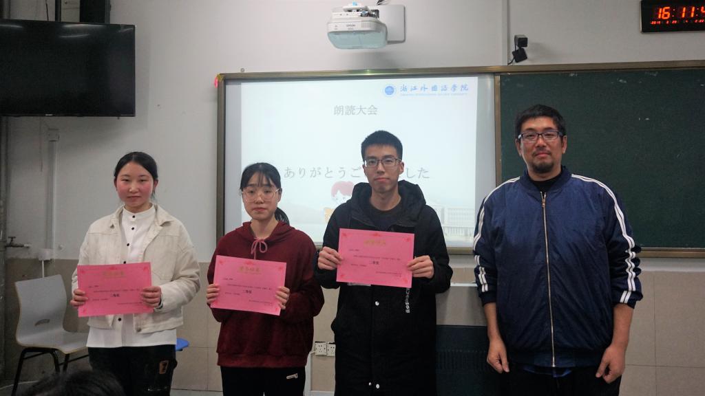 3月28日下午的 望D207掌声迭起,好不热闹!日语朗读比赛正在如火如荼地进行着,参赛选手真的是高手云集呢。不仅有功底深厚的高年级学姐学长的优秀朗读,还有一年级小同学的倾情献读。参赛选手们风采各异,表述通顺流畅、语音语调清晰标准、声情并茂又富有感染力的不在少数。