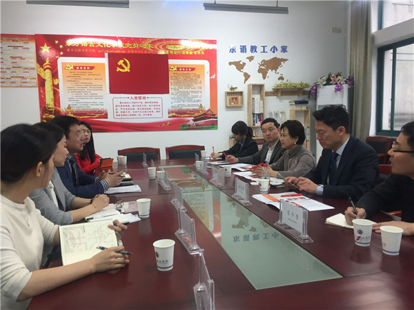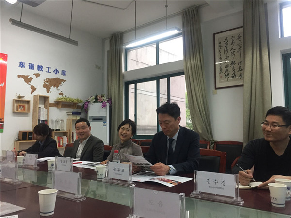 。东语学院副院长金海救及韩语系全体教师出席会见。双方在东语学院会议室展开友好合作会谈。