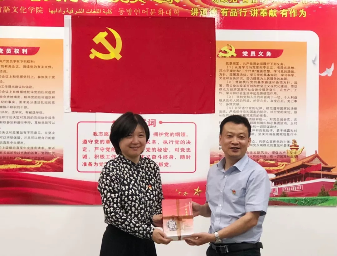 活动在肃穆的国歌声中开始,王永青首先回顾了双方党组织共建以来的合作情况,并对体训中心为学生成长提供的实践机会和帮助表示了感谢。随后,王永青就学院的基本情况、办学特色,以及“青年学子学青年习近平”学习教育活动的开展情况向对方做了详细介绍。王永青提出,今后东语学院的学习教育不光要讲好青年习近平故事,宣传贯彻习近平新时代中国特色社会主义思想,还要继续扩大学习教育的辐射力和影响力,推进学习教育活动从校园引领向社会引领转化。最后,王永青表达了未来双方党组织继续深化合作的愿景,希望双方能够在合作中共同提高、共同进步,希望我们双方的同志们能在新时代不忘初心、牢记使命,永葆奋斗的底色,为新中国成立70周年献礼添彩。