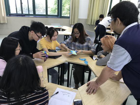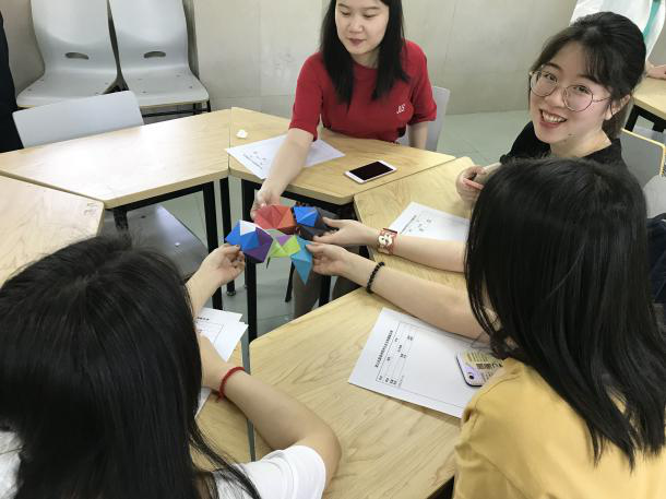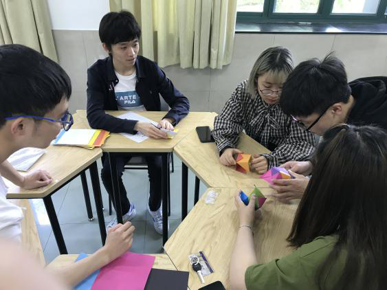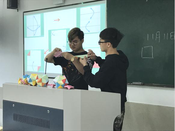 接下来在日语系老师和同学的指导下,同学们自己动手制作日本折纸工艺品代表之一——くす玉(药玉)。