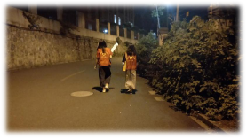 他是一位学校的中班巡逻保安,从下午两点半值班到十点,他从事保卫科工作已有十几年之久,刚刚来到本校工作单位半年,主要工作是巡逻,登记学生带箱出入校门并对外来人员车辆进行盘问。