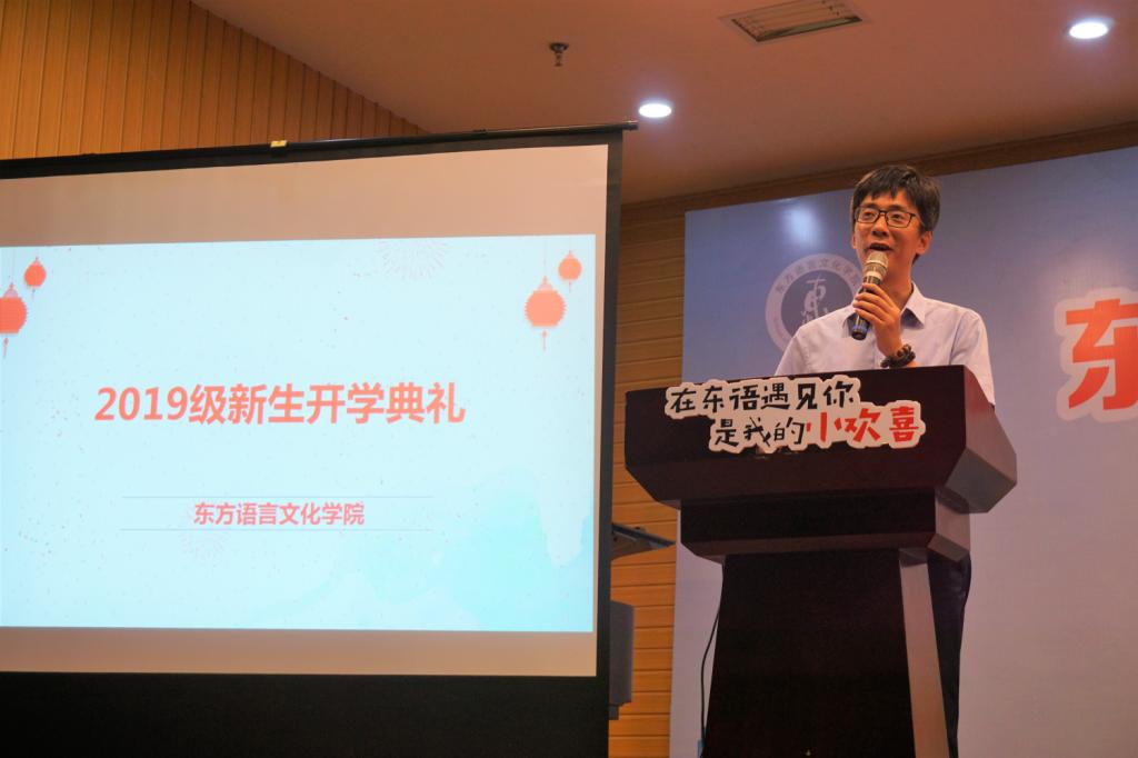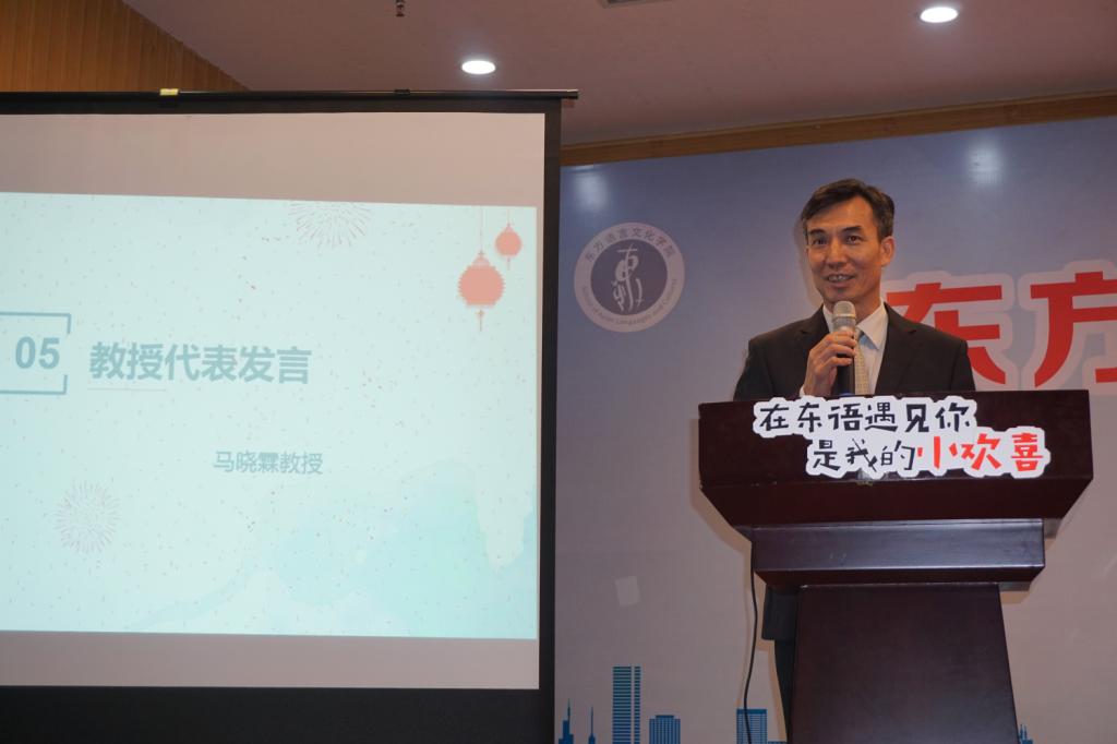 西溪学者,也是阿拉伯语系教授马晓霖老师发表演讲。他深刻诠释了对语言的理解,希望同学们对自身语种充满自信,以勤奋刻苦的精神热爱语言,并将其应用于实践,并对新同学们给予了殷切希望。