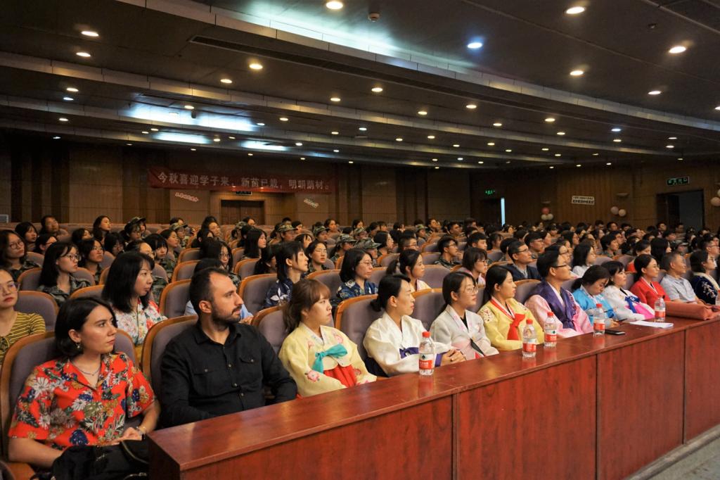 身着特色民族服饰的日语、阿拉伯语、朝鲜语、土耳其语各语系的专业教师、外籍教师代表以及学工办、院办的老师们也依次介绍了团队的主要工作。老师们笑容洋溢,给予新生以殷切祝福,热情地介绍自己,充满信心地带领大家共同进步!