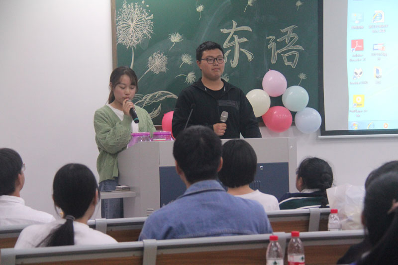 讲台上,两位19级萌新主持人用轻松诙谐的话语拉开了融冰会的帷幕。大会伊始,主席团代表讲话。在简单介绍分管部门之后,副主席也表达了对新干事们的欢迎和对之后共事的期待。