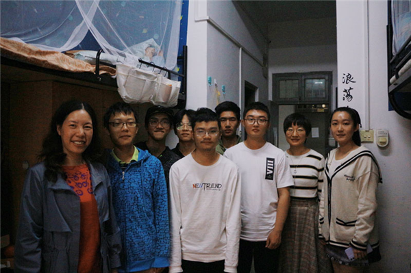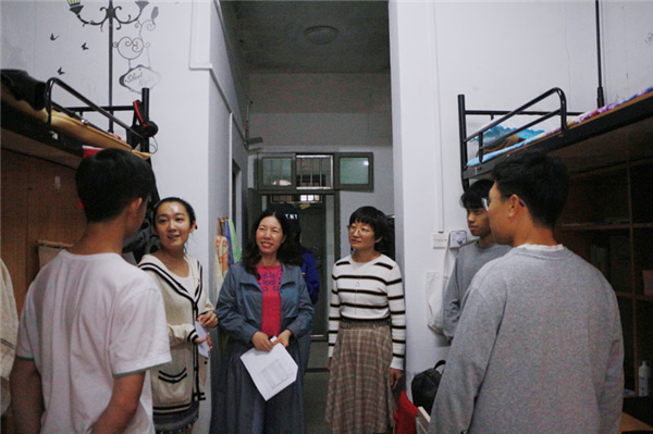 老师们走访了218、220、222三间宿舍,详细地询问了同学们的名字、专业、家乡等信息,并与同学们进行了亲切的交流。“小伙子很精神。”舒蓉雯处长笑着对来自19日语9班的陈宇聪夸赞道。了解到有少部分同学来自省外,舒老师和蔼可亲地说到:“本地浙江的同学要好好照顾省外同学呀。”一句句关怀的话语使外地同学们倍感温暖,为寒秋增添了一缕暖阳。
