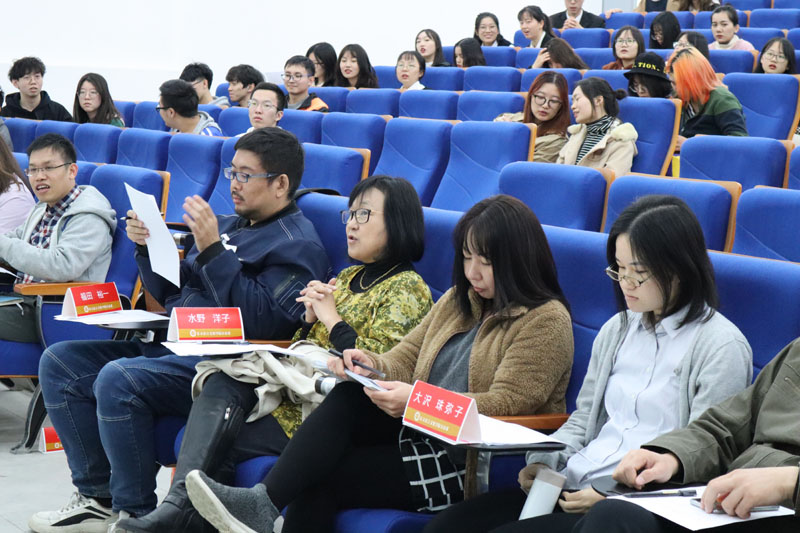 随着主持人的开场白,演讲比赛拉开序幕。参赛选手逐一上台发表自己的演讲,每位选手演讲结束由老师们进行点评并向同学们提出问题。这一环节需要同学们具备临时反应能力以及良好的日语表达能力。评委老师与同学的一问一答或风趣幽默或严肃认真,都给在场的同学老师们以启发,值得作为往后日语学习中的借鉴与经验。