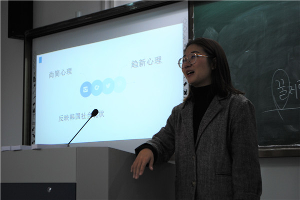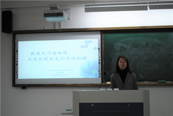 韩语系史欣艳老师在融院202教室为韩语系18级全体同学做了题为“韩国流行缩略语及其折射的文化内涵初探”的讲座。