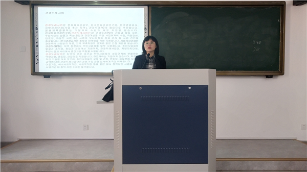 韩语系韩香花老师在融院C幢206教室为韩语系18级全体同学做了题为“韩国旅游创客培育政策及优秀案例介绍”的讲座。