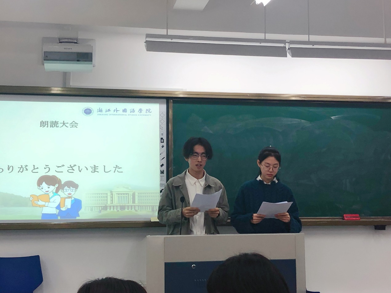 随着主持人的开场白,朗读比赛拉开序幕。参赛选手逐个上台朗诵自己的参赛作品,赢得了台下同学们的掌声,也为台下同学们提供了往后日语学习中的经验。