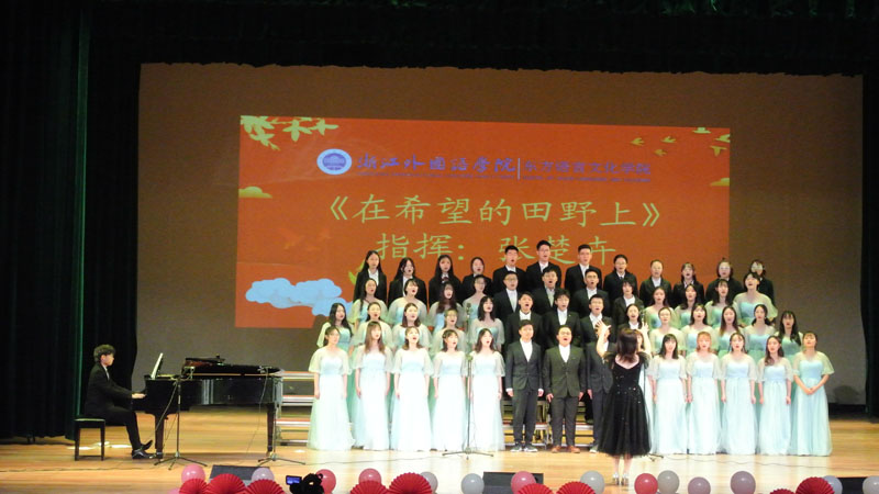 “钱塘清嘉,和山苍苍”各个学院在悠长婉转的浙外校歌声中,带领现场观众们走进一代代浙外人的故事。自选曲目上,有的学院用深厚饱满的热情和高亢嘹亮的歌声深情演绎了《不忘初心》,《走向复兴》等赞歌,歌颂了伟大祖国的光辉历程,重温了祖国的燃烧岁月;有的学院发挥专业特长,给现场观众带来了不同语言,不同文化的独特魅力。整场比赛高潮迭起,掌声阵阵。