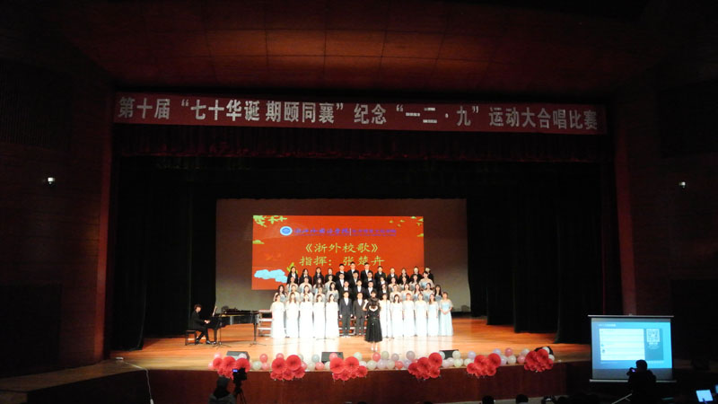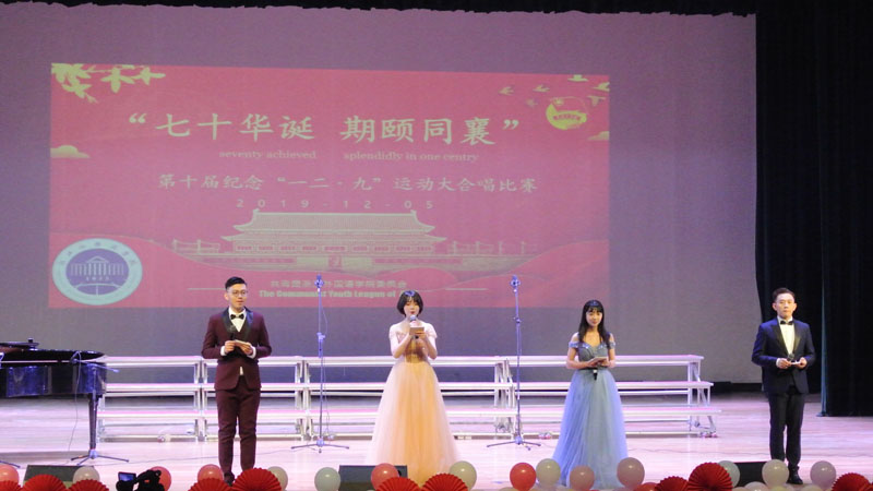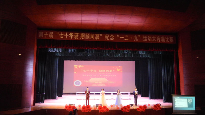 于12月5日下午18:30,在追梦堂举行了“七十华诞 期颐同襄”第十届纪念“一二·九”运动大合唱比赛。
