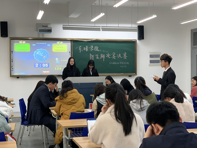 12月5日13:30,东语学院“壮丽七十载,东语学院语辩新未来”新生辩论赛总决赛于融c106如期举行。经过数日的激烈角逐,四个优秀的班级代表队伍脱颖而出,他们是阿语一班、日语一班、日语二班和日语三班。此次总决赛由东语学院学生会副主席任静以及前任校辩论队成员沈莉鹏担任评委。