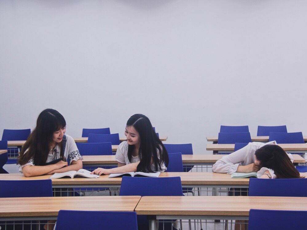 桌子上泡一杯冒着热气的甜麦片,翻开的课本在手边