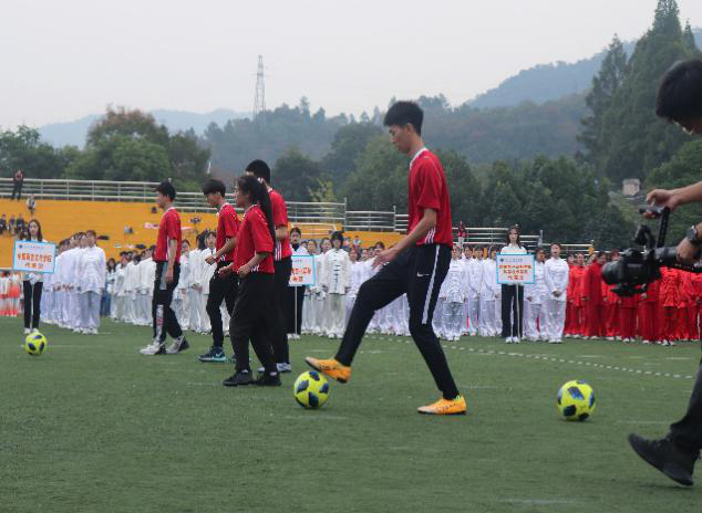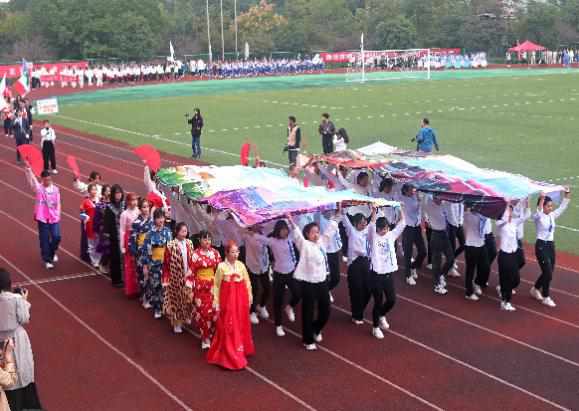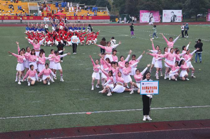 在接下来的校健美操队、校足球队表演中,处处都活跃着东语学子的身影。